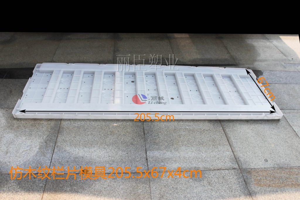這款仿木紋欄片塑料模具在用料上采用PP聚丙烯塑料為主要注塑原料,欄片模具在使用過程中主要是由兩片木紋欄片組裝成一款欄片模具,其從上部將需要澆筑的混凝土澆灌進去,待混凝土凝結(jié)后便能將仿木紋水泥欄片脫模出來,進行在市政基礎(chǔ)美觀建設(shè)設(shè)上使用。